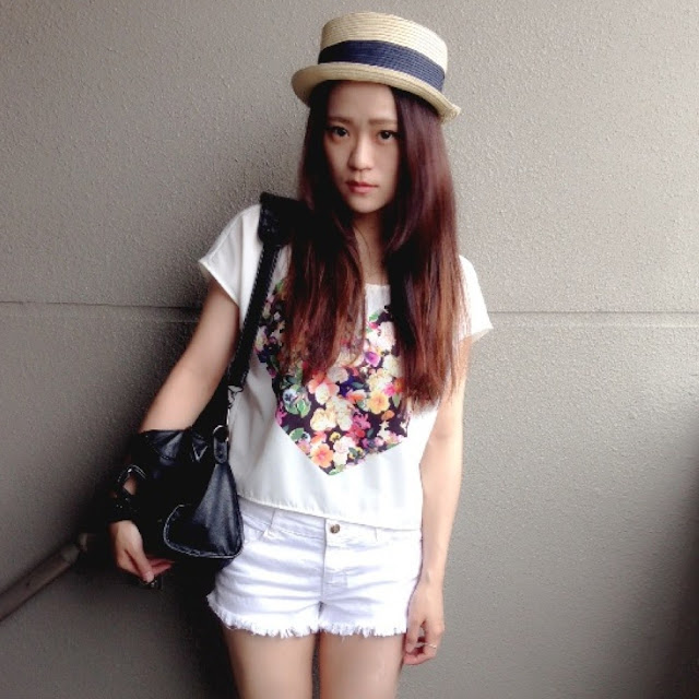 H&M floral top | ZARA shorts | Dholic flats | ZARA cancan hat |